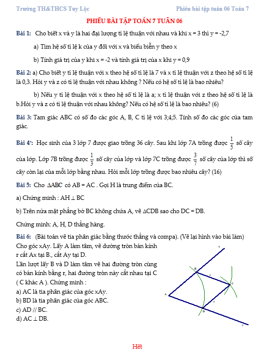 Đề ra kì 6 lớp 7